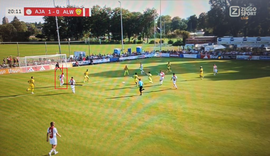 Rijkhoff is echt een talentvolle spits, maar het is op dit moment nog goed te begrijpen dat Ajax bij een vertrek van Akpom op zoek gaat naar een stand-in voor Brobbey. Ondanks zijn meevoetballende vermogen, zijn kwaliteiten aan de bal en zijn vermogen om druk te zetten op een tegenstander, ontbreken er nog wel een aantal cruciale kwaliteiten. Zo mist hij het killer instinct bij ballen voor de goal. In de eerste situatie geeft Sosa een voorzet, waarbij Rijkhoff te laat anticipeert, waardoor de tegenstander eenvoudig voor hem langs kan komen en de bal weg kan koppen. Op dit soort momenten moet hij zorgen dat hij eerder bij de bal is en zijn lichaam tussen hem en de tegenstander plaatst.