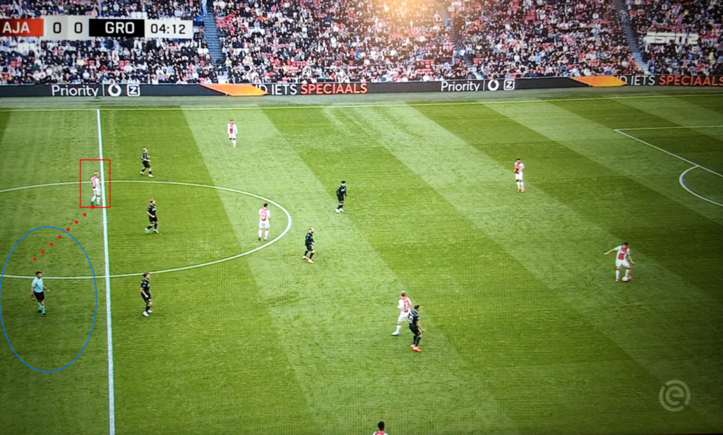 Dit plan slaagde prima, tot aan de 1-1 van FC Groningen, waarbij voor het eerst de mismatch tussen Van den Boomen en Schreuders zichtbaar werd. Schreuders is een dynamische speler en ontsnapte daar uit de rug van Van den Boomen. Aanvankelijk leek er niet veel aan de hand, aangezien Šutalo nog achter hem stond, maar hij maakte een fout in het directe duel. Daarnaast maakte Van den Boomen opnieuw een fout door geen ondersteuning te bieden aan Šutalo, die in een moeilijke situatie terechtkwam. Deze tweede fout is een duidelijk voorbeeld van waarom Van den Boomen de kwaliteiten mist om een echte nummer 6 in het elftal van Ajax te zijn.