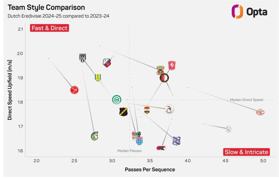 Om te beginnen een persoonlijk en illustratief verhaal over PEC Zwolle: Vorig jaar woonde ik een presentatie bij van iemand uit de organisatie van PEC Zwolle. Deze ging over de voorbereiding van PEC Zwolle op de wedstrijd tegen Feyenoord. Deze persoon gaf aan: “Wij kunnen geen betonvoetbal spelen en alleen maar lange ballen naar voren trappen. Zelfs al zou dit in dit soort wedstrijden werken, het gaat in tegen onze principes als PEC en we leren er niet van om te voetballen in topwedstrijden onder hogere druk.” Waar deze benadering op voorhand vaak als naïef wordt bestempeld, valt ze ook te prijzen. Individuele wedstrijden opofferen ten gunste van de lange termijn is niet standaard, maar kan theoretisch wel voordelen bieden. Overigens gaf hij ook aan dat dit niet betekent dat PEC helemaal geen concessies doet, maar dat ze niet alles overboord gooien voor zes wedstrijden per jaar (tegen de top drie).