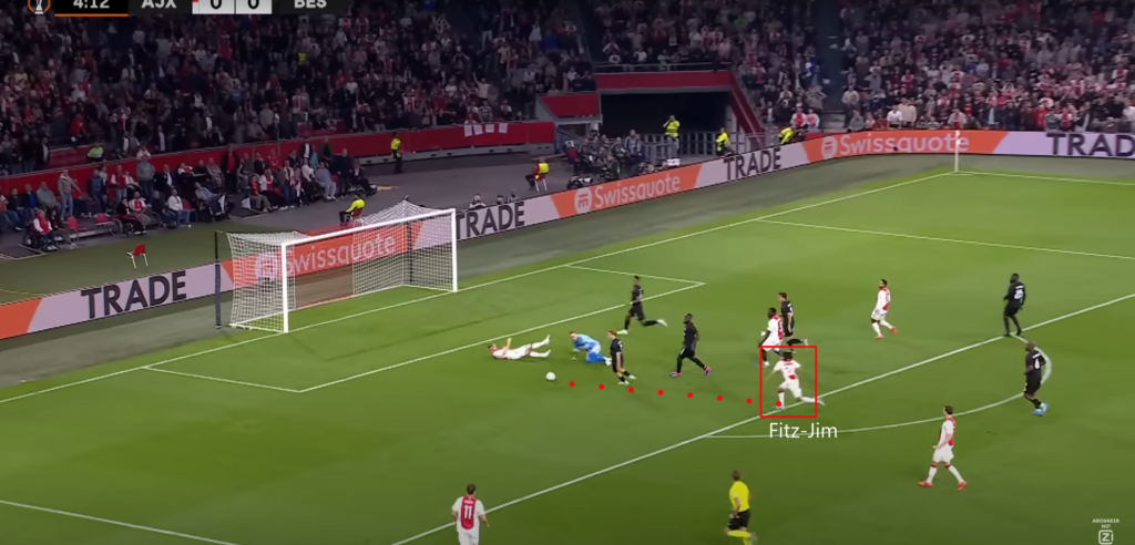 Aan de andere kant is er Fitz-Jim. Hij is altijd al een speler geweest met een fluwelen techniek, maar eerder ontbrak het hem aan stootkracht in de laatste fase van het veld. De stap die hij nu heeft gezet, ligt vooral in het timen van zijn diepteloopacties en het druk zetten met volledige intensiteit na balverlies. Deze twee aspecten maken hem een unieke toevoeging aan de selectie, omdat hij iets biedt wat de andere middenvelders van Ajax niet hebben.