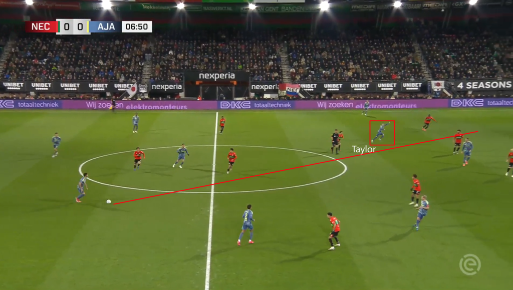 Taylor heeft vooral grote stappen gezet in zijn rust aan de bal en zijn positionering ten opzichte van de bal. Hij is continu bezig met het zoeken naar waar de ruimtes op het veld ontstaan en waar hij in kan duiken, en zijn timing is daarin ook zeer goed geworden. Deze vooruitgang zorgt ervoor dat hij, in mijn ogen, de Ajacied van de eerste seizoenshelft is.